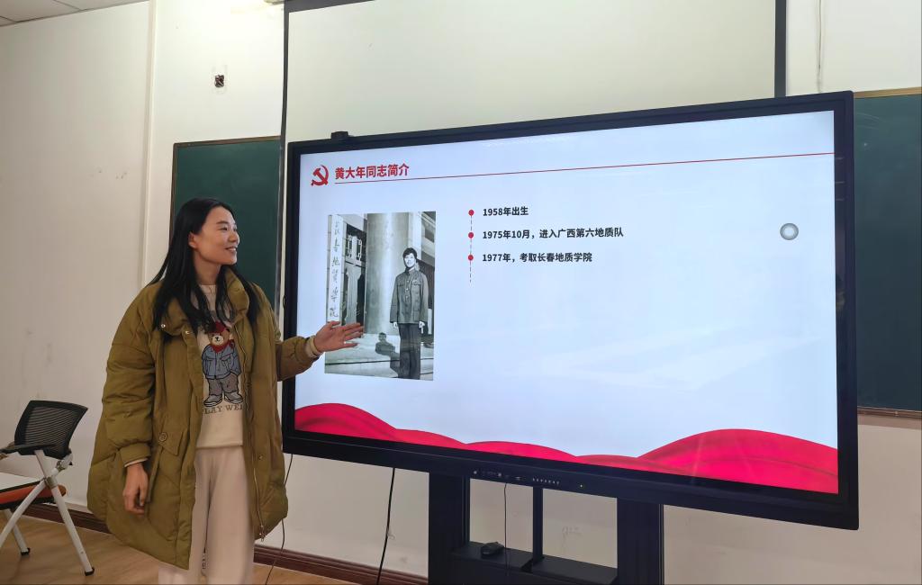首先,魏薇书记分享了黄大年的生平事迹。黄大年教授是我国著名的地球物理学家,他放弃国外优越条件,回国投身科研和教育事业,展现了深厚的爱国情怀和高尚的奉献精神。他的一生,是对教育事业无限忠诚和献身的生动写照。作为教师,他不仅传授知识,更以自己的实际行动,培养学生的爱国情怀和创新能力,激励学生为国家的发展贡献力量。