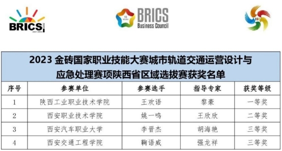 我校荣获2023金砖国家职业技能大赛城市轨道交通运营设计与应急处理赛项陕西省区域选拔赛一等奖