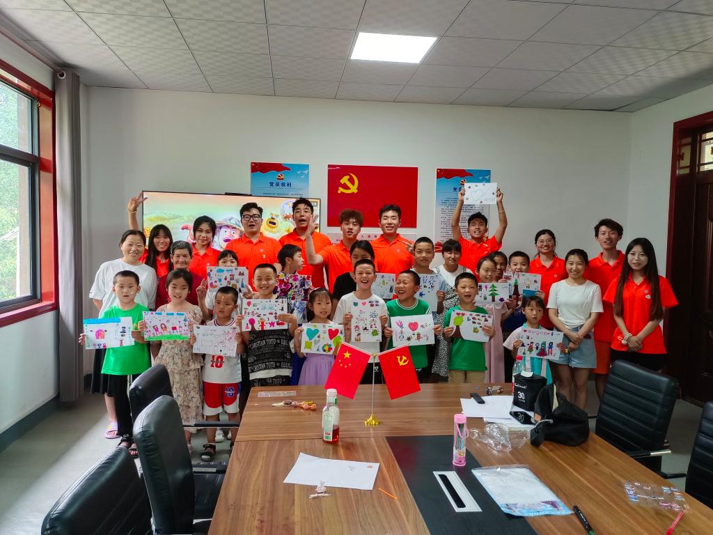 7月15号上午,土木学院“关注留守·守望未来”实践团一行11人转入下一站,抵达淳化县石桥镇石桥村,对当地留守儿童开展此次实践活动的第四模块——美育教育。讲课前,实践团学生代表为每位孩子送上书包和提前分装好的文具用品,用细心、耐心、诚心为孩子们送上温暖与关爱。当天,三位实践团成员以ppt讲解和现场示范等教学方式,分别向孩子们教授了歌曲、诗歌、画画等课程。