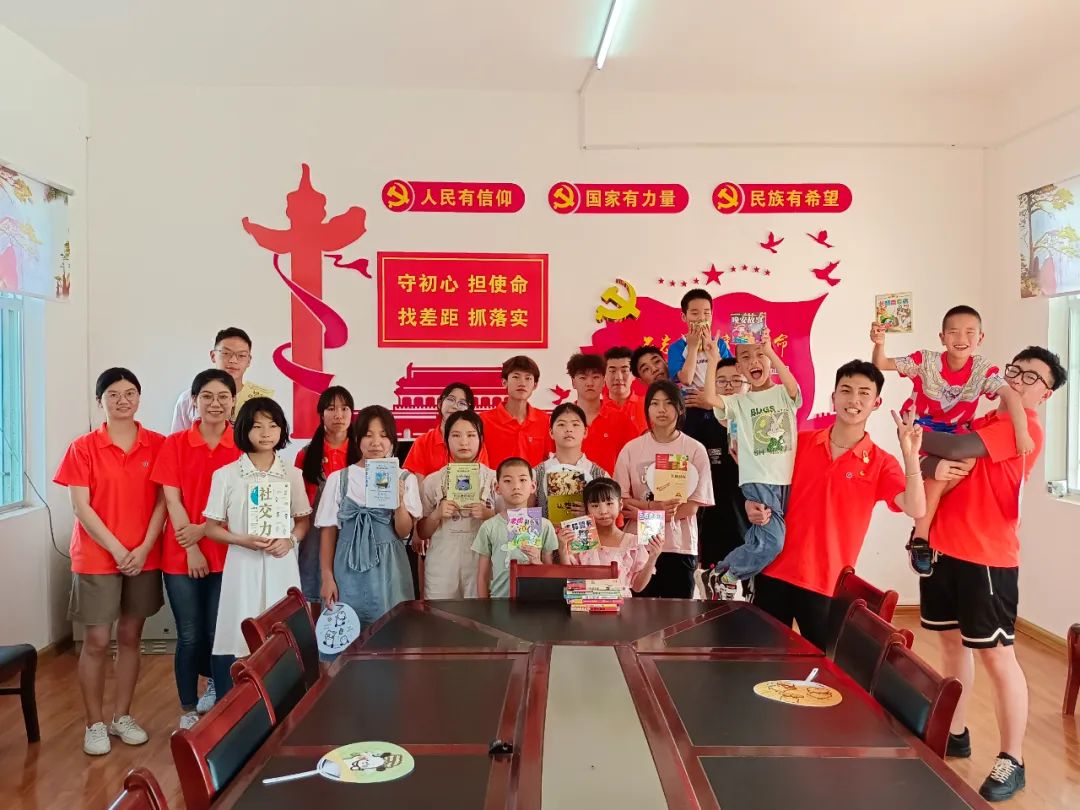 活动最后,实践队为孩子们送上了各类书籍,包括童话故事、成语书、文学名著,益智书等。小朋友们挑选了自己心仪的书籍,互相分享并与实践队成员合影留念。