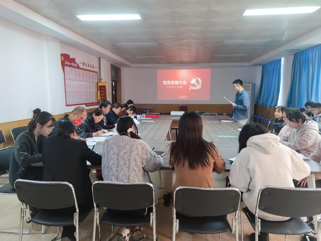 会议开始,杨梦缘等十三位发展对象汇报了对党的认识、入党动机、本人履历、现实表现。随后,各入党介绍人分别介绍了杨梦缘等十三位同志的主要情况,支委会向大会报告了对发展对象的审议情况,随后支部大会进行了讨论,与会党员充分肯定了杨梦缘等十三位同志的表现。