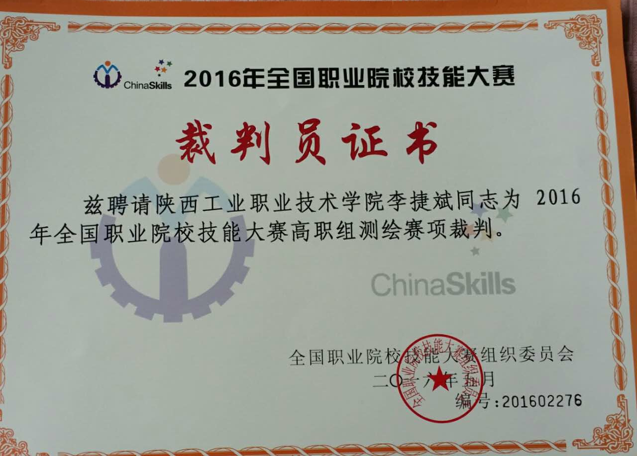 5月22日上午,由教育部、河南省人民政府、国家测绘地理信息局、水利部等31个部委主办的2016年全国职业院校技能大赛高职组“科力达”杯测绘赛项在黄河水利职业技术学院开幕,我院李捷斌老师应邀担任了该赛项的裁判,并圆满完成了执裁任务。