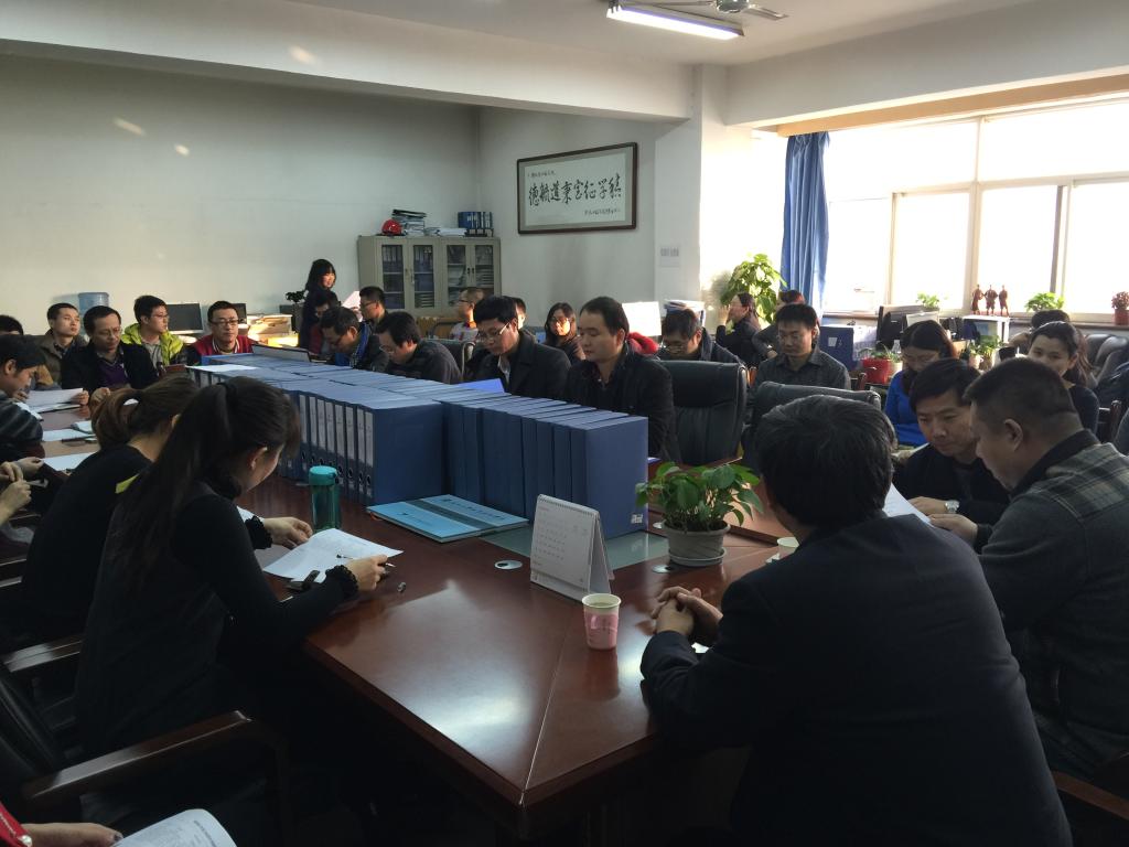 首先,贺天柱处长宣布了这次年终考核的主要内容及程序,土木工程学院院长段峻、土木工程学院总支书记何克祥向考核工作组汇报了土木学院2015年的工作情况。考核小组翻阅了相关资料,对我院各个方面的工作进行了全面考核检查,内容涉及部门年度目标责任与工作计划完成情况、教学管理工作、学生管理工作、教科研工作、招生、就业等多方面。全体教职工对本部门年度工作进行评分。