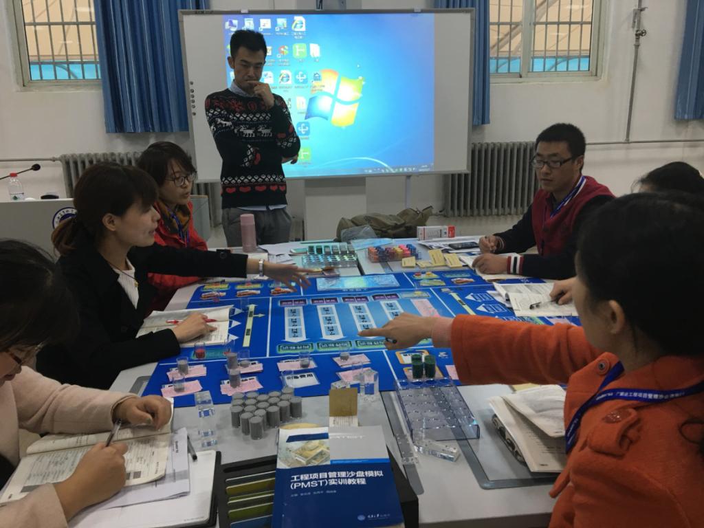 此次培训,以工程项目施工管理沙盘模拟PMST教具及评测软件的使用操作、施工方案优选、生产管理、财务管理以及施工管理项目策划为主要内容做充分讲解。通过刘老师的细心讲解和大家的耐心学习,最终教师们独立完成凯旋门工程第二、三月的操作,并进行月末结算和核算,在模拟实战的过程中,不断地反思和总结,针对存在问题,思考改进对策。