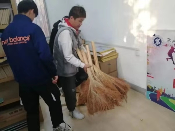 在经过学生会成员努力的打扫之后,终于将学工办仓库打扫干净。